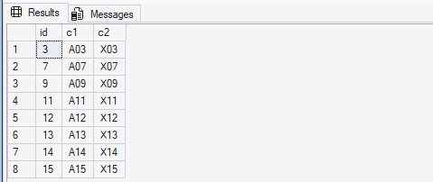 dbo.t1(id int primary key, c1 nvarchar(10), c2 nvarchar(10)) - Data: Insert ~15 rows