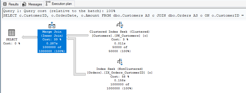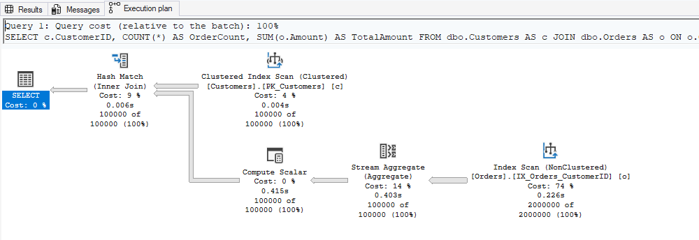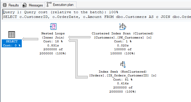- Bottom: Orders (Index Seek using IX_Orders_CustomerID)