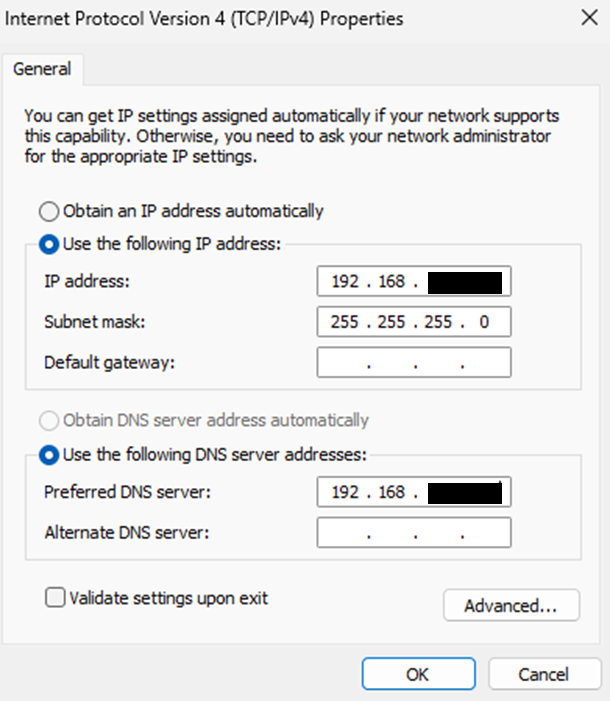 Preferred DNS server: 192.168.1.10